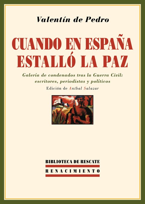 Cuando en España estalló la paz reúne una serie de retratos, crónicas y poemas del escritor argentino Valentín de Pedro acerca de su experiencia en la madrileña cárcel de Porlier, antesala del paredón tras el fin de la Guerra Civil. Estos escritos carcelarios, reunidos por primera vez en libro e inéditos en España, constituyen un testimonio valioso de nuestra guerra y del tiempo de rencores y venganzas que siguió a la contienda, con miles de ejecuciones que no tienen justificación humana y que, en muchos casos, para mayor miseria del «Glorioso Movimiento», no se sostenían sobre una base legal. Queden, pues, estos documentos para memoria de las generaciones futuras y como póstumo homenaje a un intelectual de talla, Valentín de Pedro, quien sintió el fin de la República española como una quiebra personal y colectiva, y quien, intuyendo muy pronto el alcance supranacional de la barbarie desatada en España, pudo hacer suyas aquellas palabras certeras de Albert Camus: «Fue en España donde mi generación aprendió que se puede tener razón y aun así ser derrotado, que la fuerza puede vencer al espíritu, y que, muchas veces, el coraje no obtiene recompensa. Esto es, sin duda, lo que explica por qué tantos hombres, en todo el mundo, consideran el drama de España como una tragedia personal».