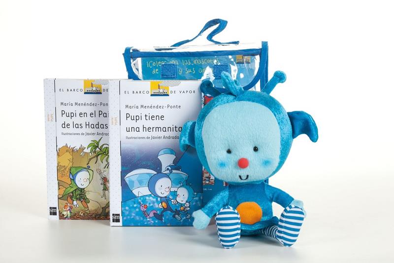 Este nuevo Pupipack contiene dos libros: "Pupi tiene una hermanita" y "Pupi en el País de las Hadas" y un muñeco de Pompita, la tierna hermanita de Pupi.