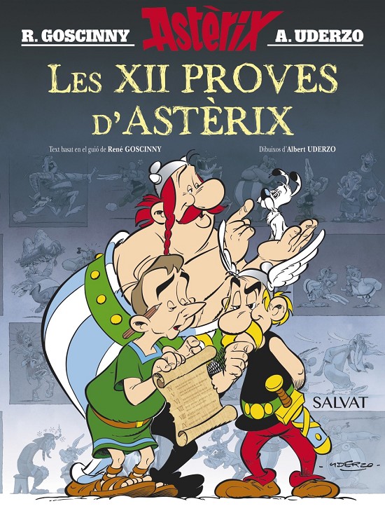 En Juli Cèsar vol acabar amb /l?irreductible llogaret gal que se li resisteix des de fa temps, així que obliga els seus veïns a triar dos representants que hauran de superar 12 proves de les quals solament els déus podrien sortir victoriosos. Si no les superen, es rendiran; si les superen, en Juli Cèsar es posarà en mans dels gals. Però en Juli ignora que els dos escollits, l?Astèrix i l?Obèlix, compten amb l?ajuda del seu enginy i... de la poció màgica d?en Panoràmix. Aquesta nova edició de Les 12 proves d?Astèrix (un àlbum per cargolar-se de riure basat en la mítica pel·lícula d?animació del mateix títol) inclou, a més de 40 il·lustracions inèdites i un text nou, una carta d?Uderzo als lectors.