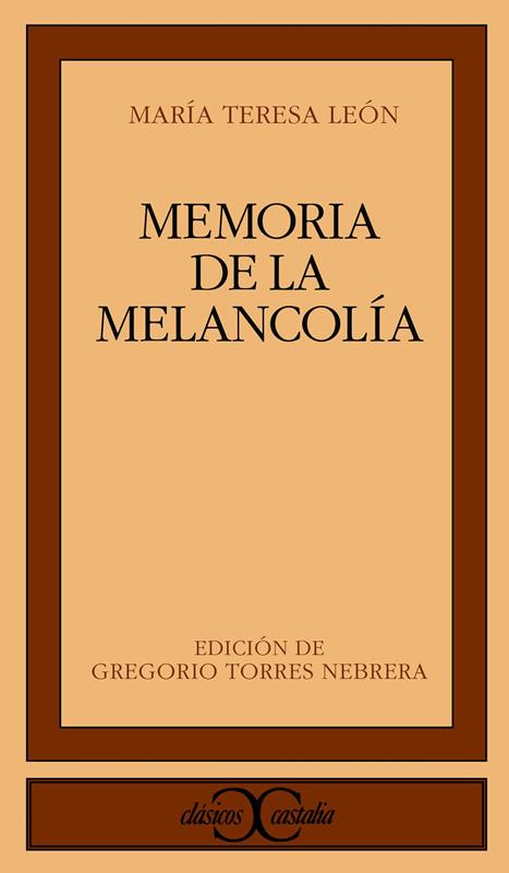 Entre el brillantísimo grupo de escritores que pobló el panorama cultural español de los años veinte y treinta de este siglo, que casi ya se va, y buena parte de los años del exilio, destaca por su originalidad, su profundo bagaje cultural, y su inteligente feminismo, María Teresa León, autora de una prosa hermosa e impecable. Casi con seguridad, su unión sentimental con el poeta Rafael Alberti dejó en un segundo plano su importancia como escritora. Pero su libro de memorias está a la altura de la indiscutible Arboleda perdida albertiana, y es con seguridad uno de los textos en prosa de mayor calidad entre los del Veintisiete. Memoria de la melancolía nos permite conocer mejor nuestra historia, a Alberti, y, por supuesto, a la burguesa, rebelde, guerrillera, exilada, esposa, madre, feminista, amiga y escritora: María Teresa León. GREGORIO TORRES NEBRERA , catedrático de Literatura Española en la Universidad de Extremadura, es autor de la monografía Los espacios de la memoria . La obra literaria de María Teresa León.