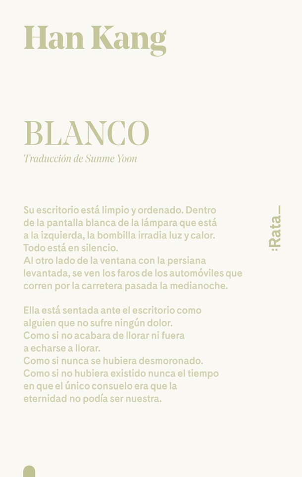 En algunas culturas orientales el blanco es el color del luto. Quizá las cosas blancas que nos rodean preservan nuestro dolor, contienen una angustia que no sabemos ver a primera vista. Kang se adentra en una delicada indagación literaria y busca, a través de la descripción de cosas cotidianas, el mal que siempre ha sentido por la ausencia de una hermana a quien no conoció.