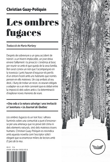Les ombres fugaces és un text fosc i alhora lluminós sobre una comunitat a punt d’ensorrar- se per una amenaça que no prové del clima ni dels elements naturals, sinó dels mateixos éssers humans. Christian Guay-Poliquin es reivindica amb aquesta novel·la com l’escriptor sòlid i elegant que va enamorar milers de lectors amb El pes de la neu.