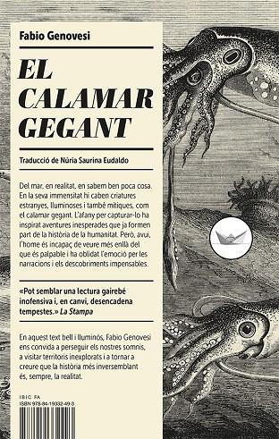 Del mar, en realitat, en sabem ben poca cosa. En la seva immensitat hi caben criatures estranyes, lluminoses i també mítiques, com el calamar gegant. L’afany per capturar-lo ha inspirat aventures inesperades que ja formen part de la història de la humanitat. Però, avui, l’home és incapaç de veure més enllà del que és palpable i ha oblidat l’emoció per les narracions i els descobriments impensables.