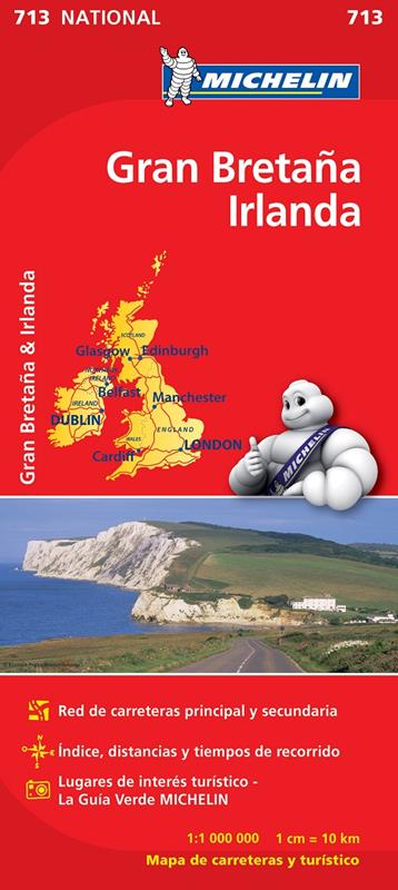 El Mapa National Gran Bretaña Irlanda, editado a escala 1/1 000 000, guarda además otros interesantes contenidos, tales como la red de carreteras principal y secundaria, índice de localidades, cuadro de distancias, tiempos de recorrido, y lugares e informaciones de interés turístico que han sido extraídos de La Guía Verde MICHELIN.