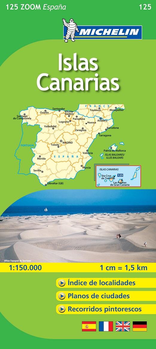 El Mapa Zoom Islas Canarias, editado a escala 1/150 000, presenta la leyenda en cuatro idiomas (castellano, alemán, francés e inglés), índice de localidades y contiene los planos de Puerto de la Cruz, Santa Cruz de la Palma, San Sebastián de la Gomera y Santa Cruz de Tenerife.